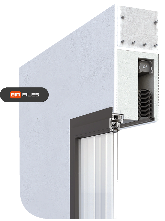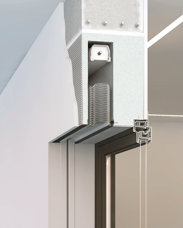 Realizzato in EPS bianco o grigio con grafite, il cassonetto Ecliss è progettato per alloggiare le lamelle frangisole. La struttura è rifinita con rasante cementizio classe ignifuga A1 sui tre lati e dotata di fianchetti in OSB/03, per garantire isolamento, estetica e funzionalità.