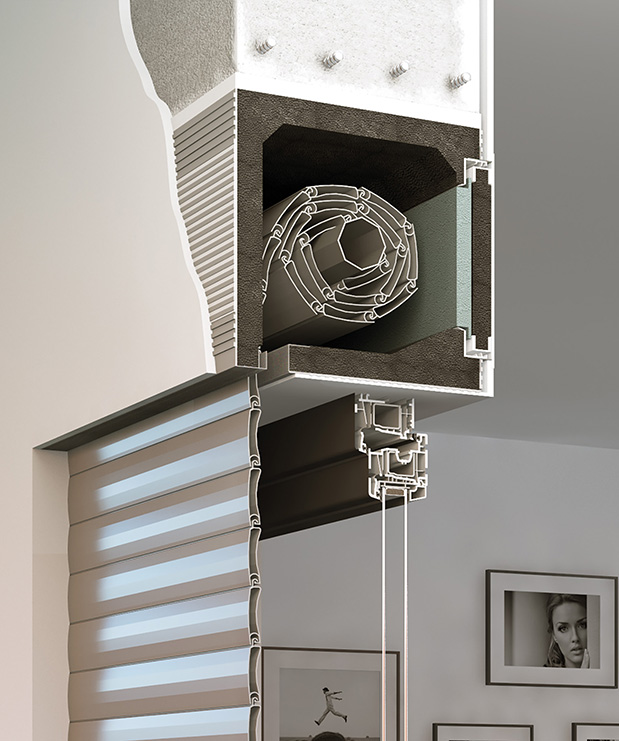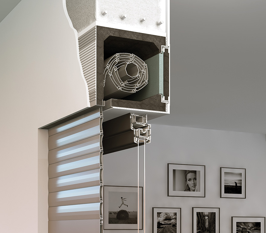 Il cassonetto scompare nella muratura, integrandosi perfettamente in qualunque tipo di contesto abitativo. Il tappo frontale sborda solo 3 mm ed è completamente tinteggiabile o rivestibile.